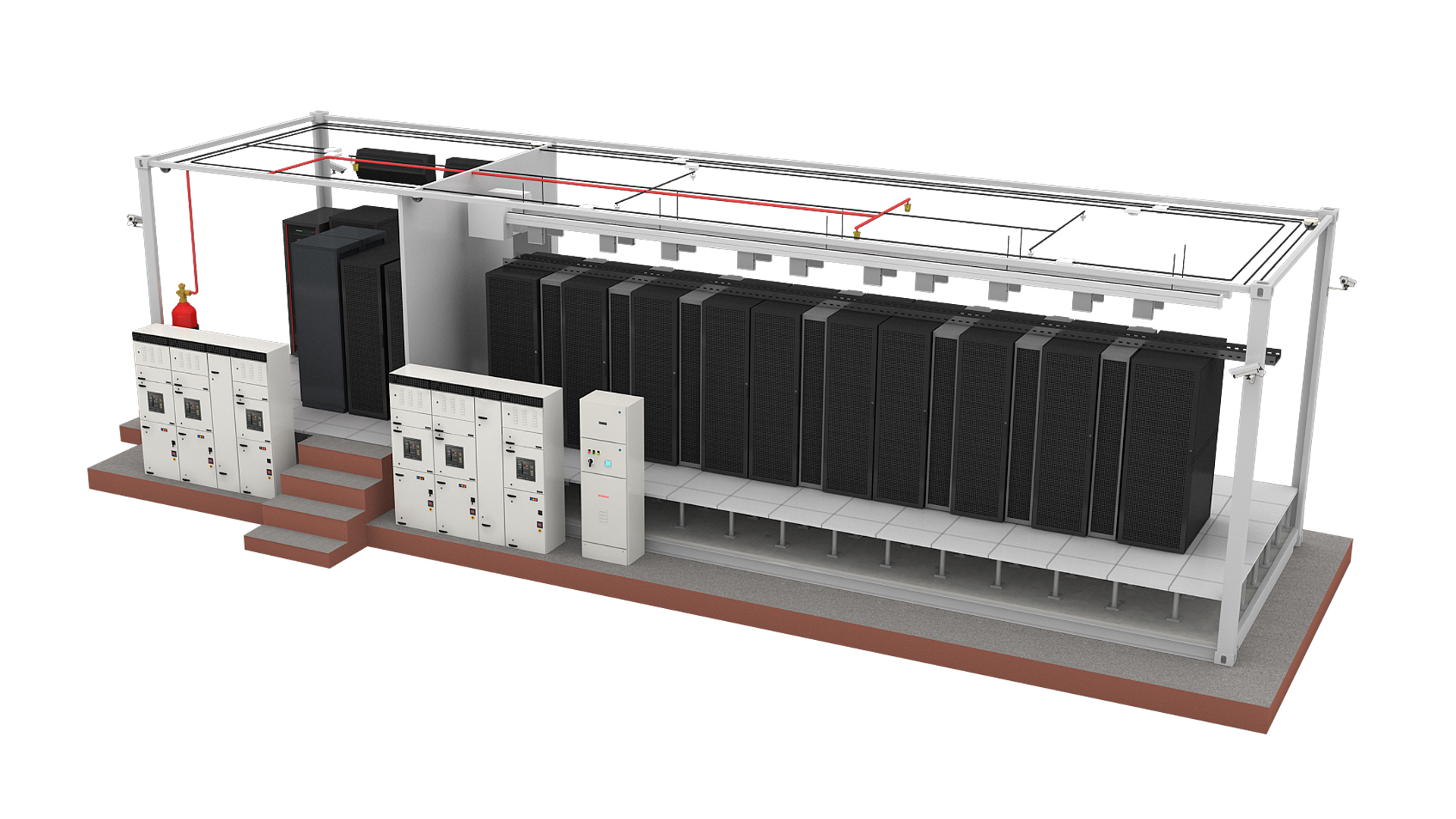 EcoCube is a fully integrated containerized data center solution that houses IT infrastructure, power systems, cooling units, cabling, safety, and monitoring — all within a rugged shipping container form factor designed for fast deployment, mobility, and reliability.